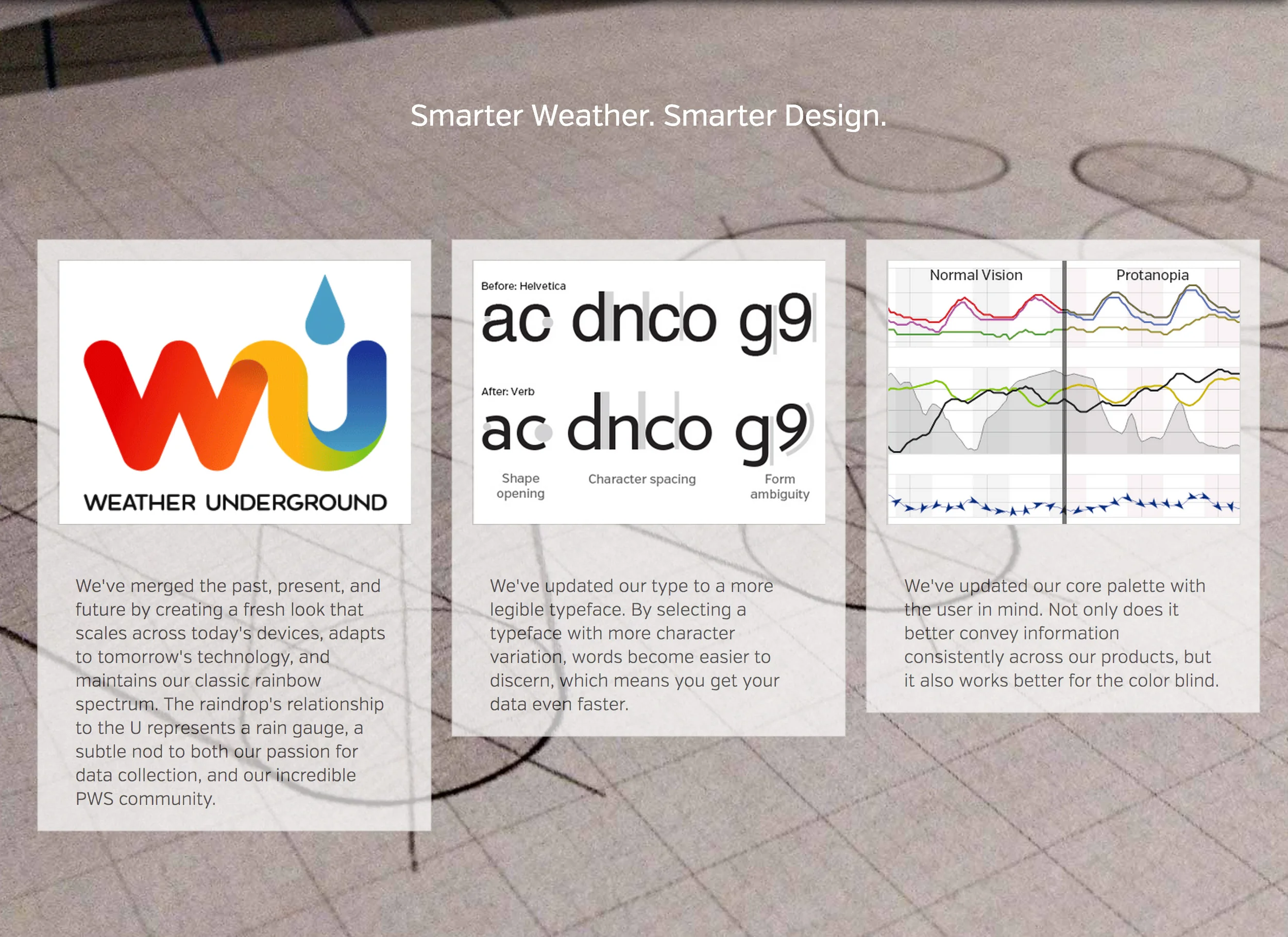 After being acquired by The Weather Channel in 2012, I led a full brand redesign of the Weather Underground brand including the visual identity, website and native apps.